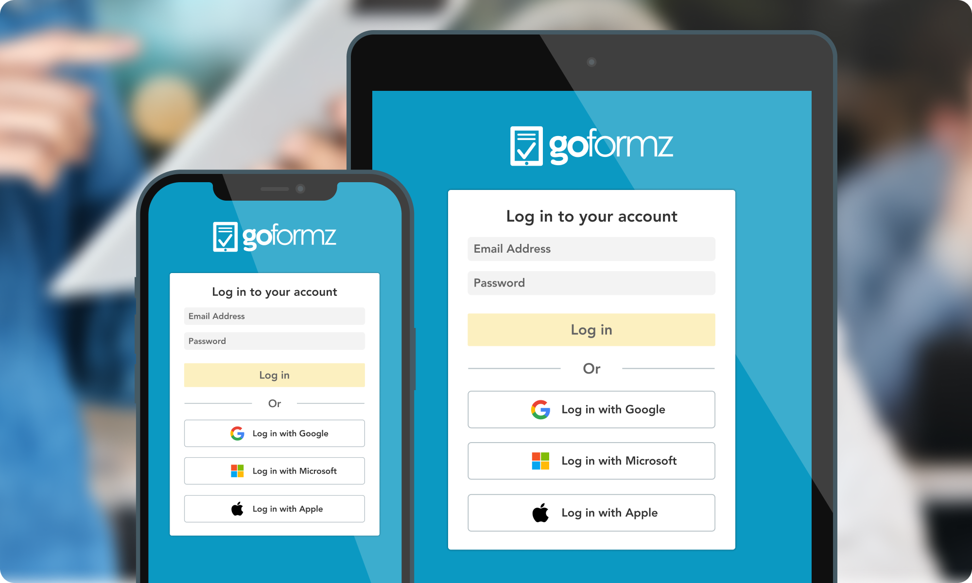 Download the GoFormz mobile app on your phone or tablet and log in.