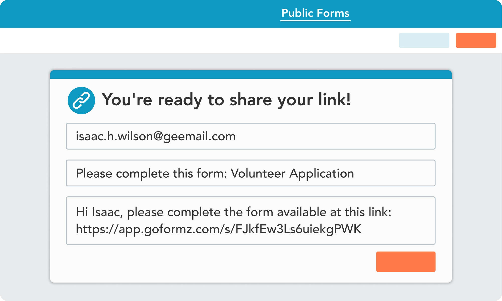 Select Save Public Form to generate your shareable form link. You can copy and share this link, as well as send it to others via email or text.